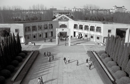 淮安周恩來紀念館的人字形附館和牌樓式的景門,呈“八一”圖案。