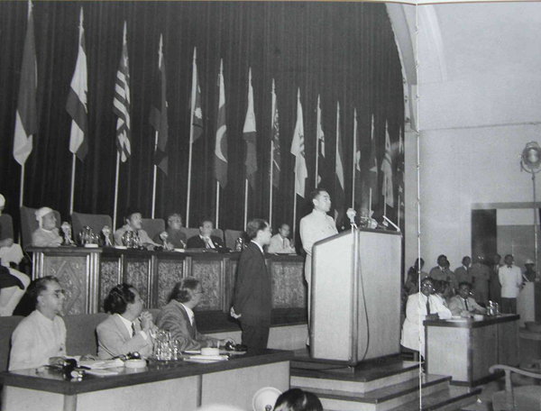 1955年4月,周恩來(lái)在亞非會(huì)議上發(fā)言